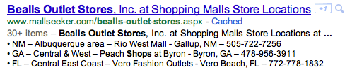 Naast bovenstaande schema’s toont Google ook rich snippets voor pagina’s die lijsten bevatten zoals bij het noemen van verschillende shop locaties: