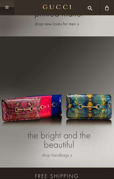 Modehuis Gucci verviervoudigde sinds de introductie van een geoptimaliseerde website haar mobiele inkomsten door de conversie met zeventig procent toe te laten nemen. Sinds afgelopen december zetten de Italianen in op een mobielvriendelijke omgeving die consumenten moet laten struinen en kopen. Volgens de digital director van het bedrijf is met name in dit luxe marktsegment de penetratie van smartphones hoog en behoort het mobiel winkelen tot de lifestyle. Na enkele maanden bedroeg het mobiele verkeer al zevenentwintig procent van het totaal. Tijdens de ontwikkeling kwam met name de focus te liggen op het overbrengen van het gevoel van luxe met de beperkingen van een mobiel apparaat. Met name het product zelf krijgt daarom de aandacht.