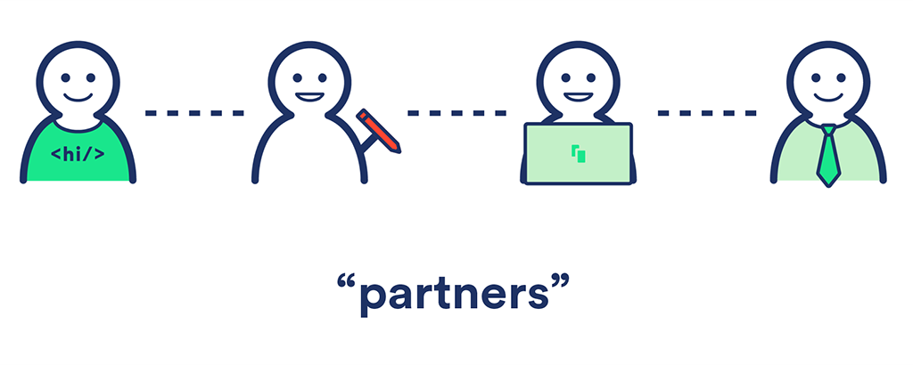 “Voor een designer in een in-house product team, zijn relaties de basis van service design. Dus als je vanuit service design praat over ‘stakeholders’, heb je het eigenlijk over je teamleden. Noem ze daarom partners, en neem de tijd om ze persoonlijk te leren kennen. Wat motiveert hen? Wat voor activiteiten doen ze graag privé? Bij Spotify zette ik daarom coffee meetings op, om iedereen te ontmoeten en te leren kennen.”