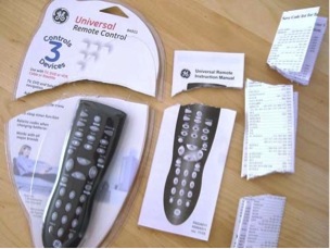 In de afbeelding zie je een voorbeeld van een teleurstellend uitpakmoment bij uitpakken. De klant knipt de clamshell-verpakking (bewust lastig open te krijgen om winkeldiefstal te voorkomen) doormidden open en hiermee is de handleiding onleesbaar stukgeknipt.