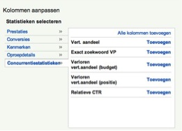 Het bepalen van het vertoningspercentage kan eenvoudig achterhaald worden in Google AdWords. Het is mogelijk om op zowel campagneniveau, als op advertentiegroepniveau, het exact zoekwoord vertoningspercentage aan te vinken. Zo krijg je een overzicht van het percentage van de door de bezoekers gebruikte zoekwoorden die exact overeenkomen met de door jou opgegeven zoekwoorden.