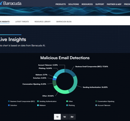 Barracuda Networks lanceert Barracuda Research: een nieuwe centrale bron voor informatie over dreigingen, analyses van incidenten, gegevens over de detectie van e-maildreigingen door Barracuda AI en meer. Barracuda Research biedt IT- en securityprofessionals – evenals managed service providers – bruikbare inzichten over de nieuwste dreigingen en geeft aan wat de signalen zijn waar ze op moeten letten. Daarnaast biedt de site praktische stappen om beschermd te blijven. Barracuda Research is voor iedereen toegankelijk.