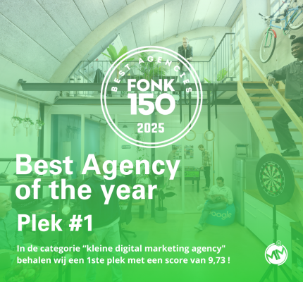 De FONK150 wordt gezien als een van de belangrijkste ranglijsten binnen de Nederlandse marketingbranche. De lijst is volledig gebaseerd op klantwaarderingen en vormt daarmee een directe weerspiegeling van het vertrouwen dat onze klanten in ons stellen. Dat we dit jaar als beste kleine digital agency van Nederland zijn beoordeeld, en daarmee het best gewaardeerde online marketing bureau binnen onze categorie, laat zien dat onze inzet op kwaliteit, samenwerking en resultaatgericht werken wordt herkend én gewaardeerd.