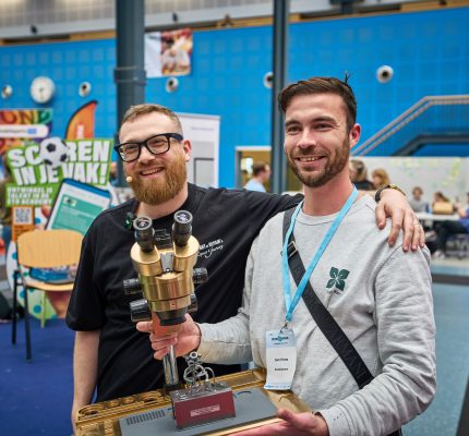 Sam wist uiteindelijk met slechts één punt verschil de overwinning te behalen. ‘Het was pittig; je staat toch behoorlijk onder druk met die camera’s er bovenop,’ vertelt de kersverse kampioen. ‘Ik moest alle zeilen bijzetten, maar gelukkig hield ik het hoofd koel.’ Na afloop ontving hij uit handen van juryvoorzitter Justin Ashford een goudkleurige Smartphone Microscoop én een uniek beeldje dat een smartphone-reparateur uitbeeldt.