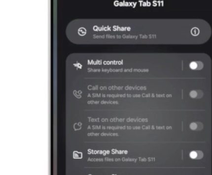 4 Elk apparaat moet zijn aangemeld bij hetzelfde Samsung-account en zowel wifi als Bluetooth moet ingeschakeld zijn. Vereist bijgewerkte Galaxy-telefoons en -tablets met One UI 7 of hoger en kernelversie 5.15 of hoger en Galaxy Book2 of hoger (Intel) en Galaxy Book4 of hoger (Arm) en Samsung Smart TV-modellen inclusief U8000 en hoger die zijn uitgebracht na 2025. De beschikbaarheid van functies kan per regio en apparaatmodel verschillen. Gesimuleerde schermafbeelding ter illustratie. Daadwerkelijke gebruikerservaring/-interface kan afwijken.